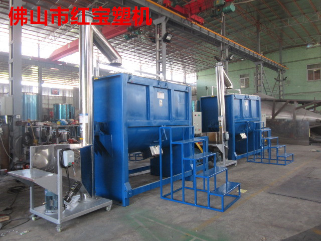臥式攪拌機(jī)實(shí)際上是一種混合率高、殘留物少的設(shè)備。也可廣泛應(yīng)用于塑料顆粒、塑料粉、化工粉、油漆、硅藻土、藥粉、中藥粉等粉末。本實(shí)用新型的特點(diǎn)是:雙螺旋帶結(jié)構(gòu),兩側(cè)物料通過大螺旋帶由兩側(cè)向中間推送,中間物料通過小螺旋帶向兩側(cè)推送,除適合攪拌粉末外,還可以加入液體藥劑,根據(jù)需要添加噴淋裝置,并通過空氣壓力原理將液體驅(qū)動(dòng)到水平混合器的頂部,然后用噴頭噴灑液體。