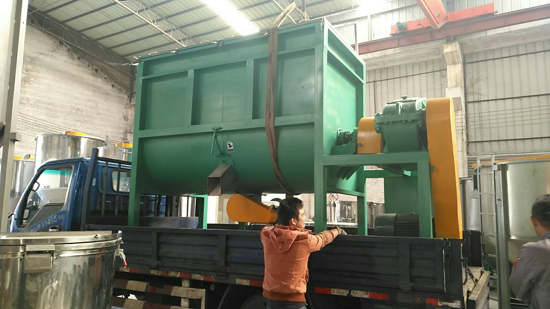 結(jié)構(gòu)特點:該機(jī)為臥式筒體,獨特的結(jié)構(gòu),運轉(zhuǎn)平穩(wěn),質(zhì)量可靠,噪音低,使用壽命長,安裝維修方便,并有多種攪拌器結(jié)構(gòu),用途廣泛的多功能混合設(shè)備。混合均勻度高,是粘性,螺旋帶上可以安裝刮板,更適應(yīng)稠狀,糊狀的混合。在不同物料的混合要求下(特殊物料必須每次混合后需清洗),干粉,細(xì)粉,膩子粉臥式攪拌機(jī),帶提升機(jī)圖片。雙螺旋攪拌機(jī),攪拌非常均勻。